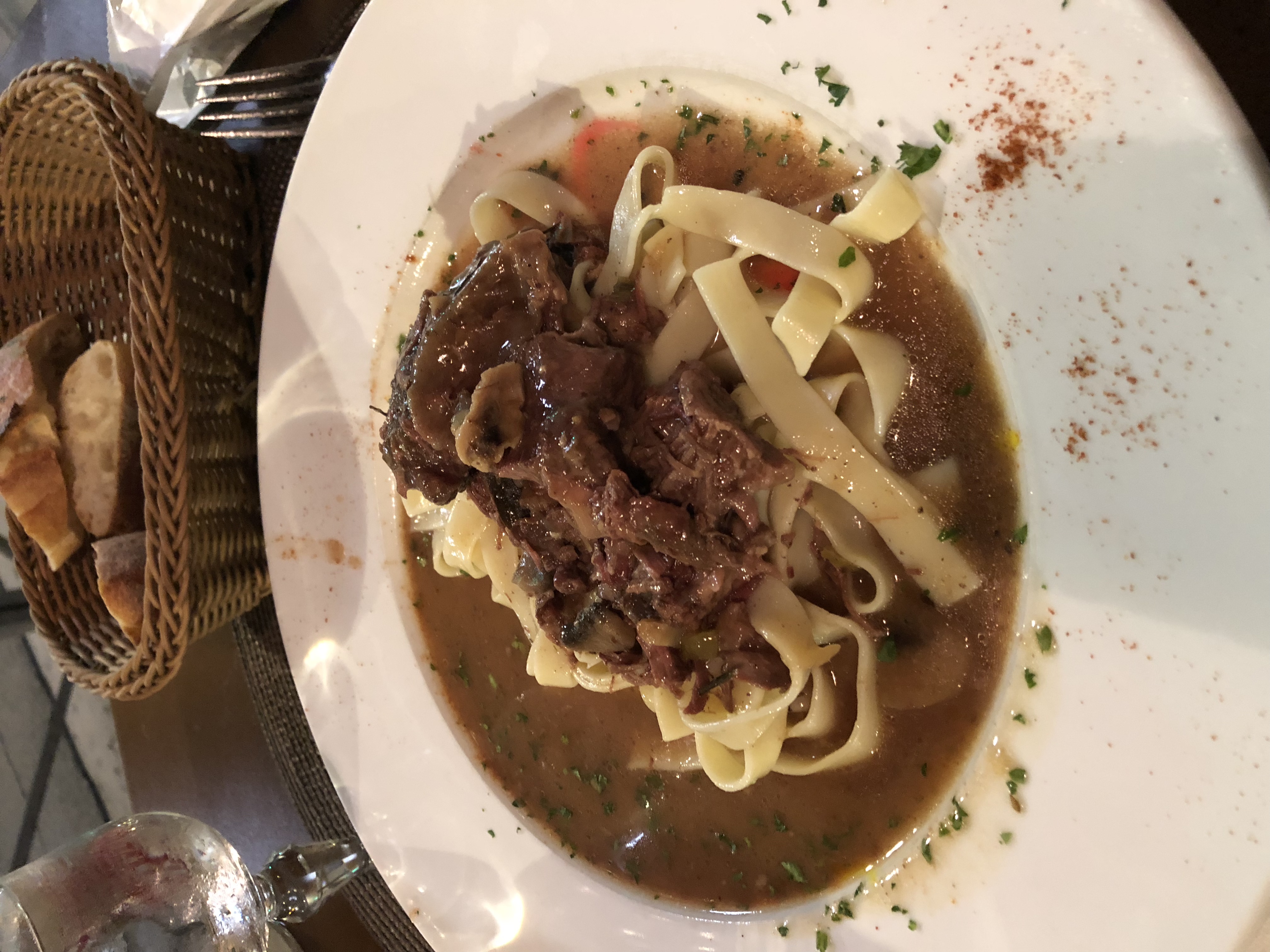 For dinner, I ended up picking a place that was just off Avenue Jean Medecin called L’Ovale, which serves French Southwest cuisine. Their fixed price 3-course dinner menu was a great deal and the food was delicious! I opted for a salad and beef stew, which the stew ended up having pasta noodles. Dessert was a