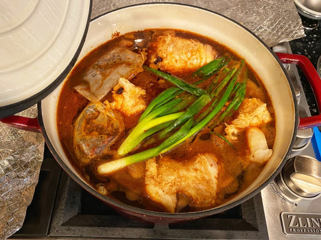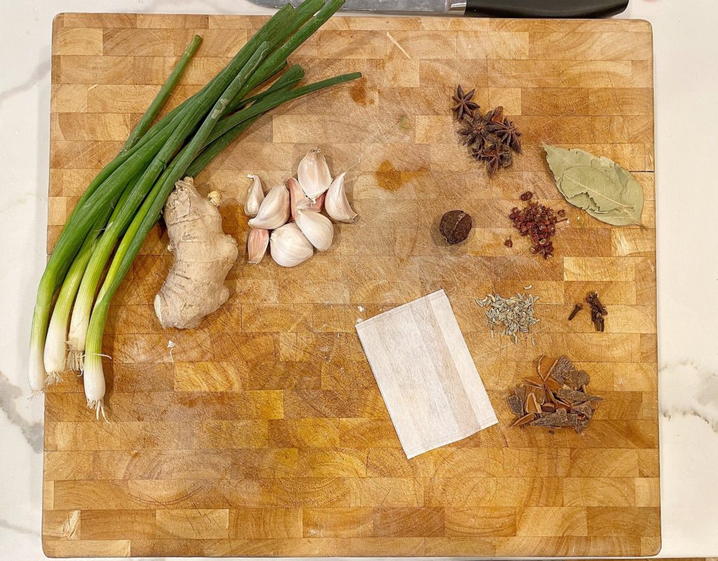 It’s advised that you remove and toss the whole green onions, ginger slices, and tea bag of spices. Cover your Dutch oven to leave overnight, and the next day your leftover soup will be even more flavorful. After a day, pack into glass Tupperware and refrigerate!