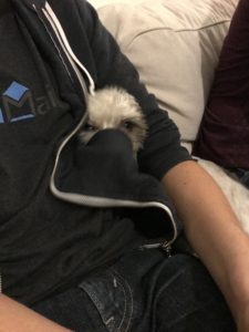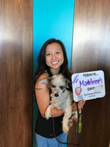 Madeleine Day – October 21, 2017. I got Maddie from Adopt & Shop in Culver City, a non-profit pet store with cat/dog adoptions. I chose Maddie because she actually paid attention to me, compared with all the others dogs I met who were a lot more interested in being out of their crates. Maddie also had a kennel cough so she was very very mellow – it slightly worried me that she might be too calm but she’s actually a little piece of joy. Look at how long and matted her fur was!