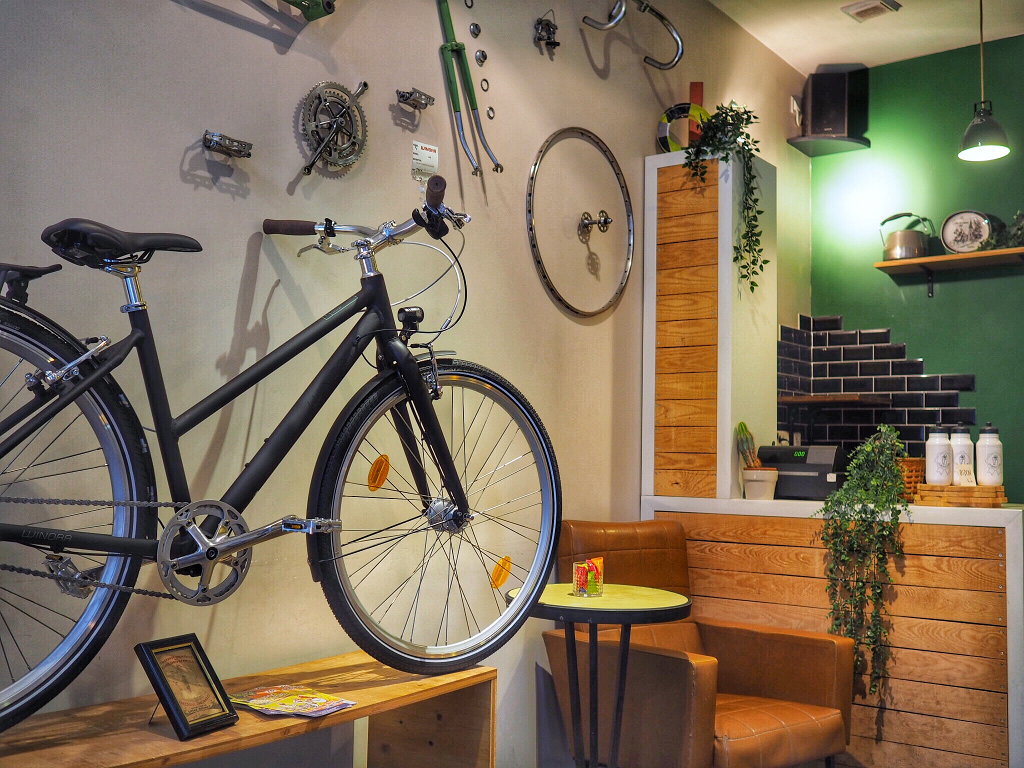 Erik had taken an overnight bus from Mannheim, Germany to Lyon. When he arrived early at Lyon’s bus station, I was still in bed. Our meeting point was Place de la Bellecour, which is just a huge plaza that the city sometimes held events. But since there’s usually nothing there, it’s a great meeting spot. I hopped on a bike and sped to meet him since I was already late, and it was so good to see Erik again! We walked back to our Airbnb to drop off his stuff, then we headed out to get some breakfast and coffee. One place that I passed by earlier that I knew Erik would love was this bicycle coffee shop.