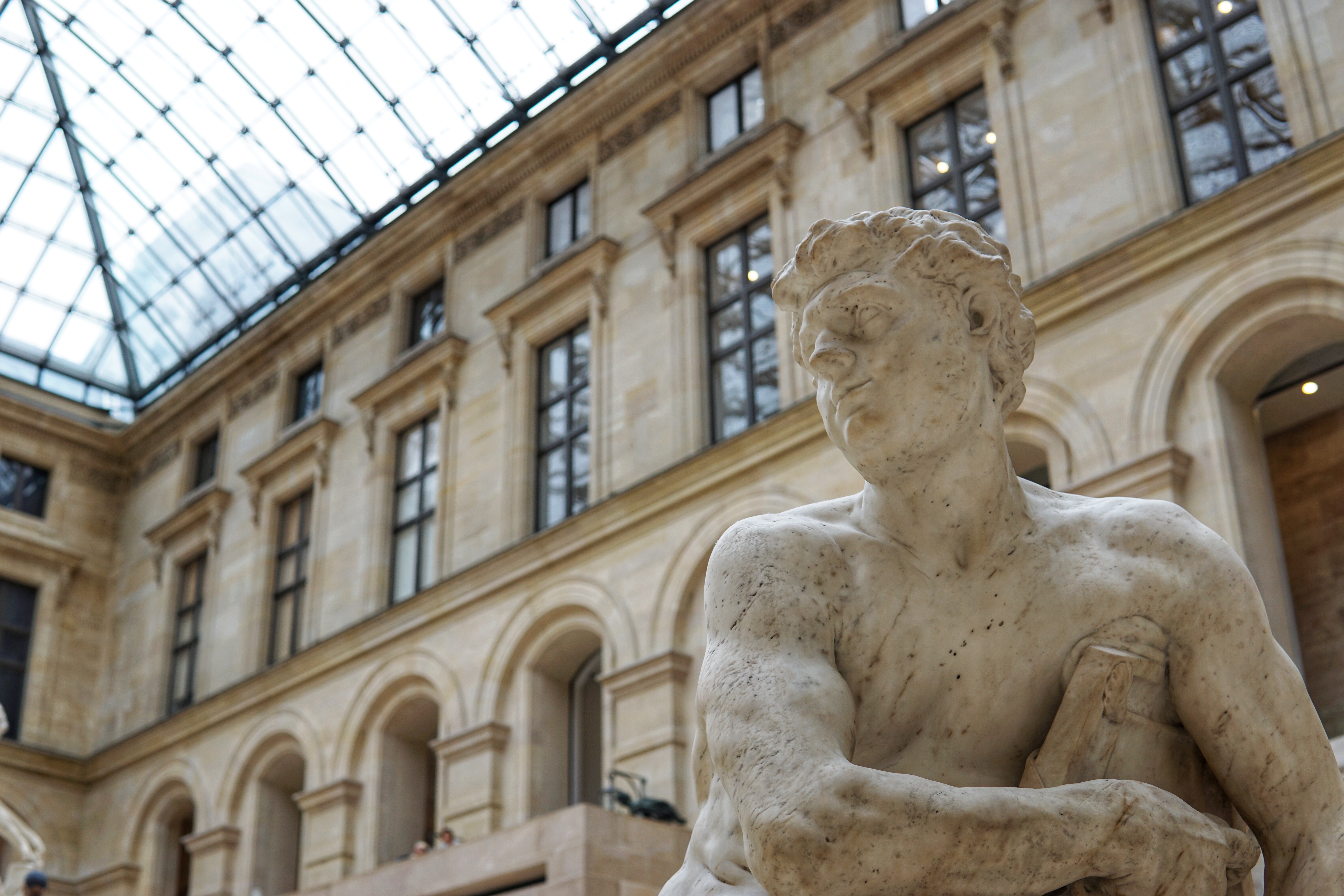 The minute we left the museum, it started to rain a bit more heavily so we grabbed some falafel wraps from a sandwich shop to-go and ate them inside the Carrousel’s fancy food court where you can get a glass of wine for 3 euros. And since we were so close to the Louvre, we made that our next museum! Again, Erik got in for free and I used my Museum Pass. All these shots of the Louvre were taken by Erik and his ever increasing talent for framing his subjects.