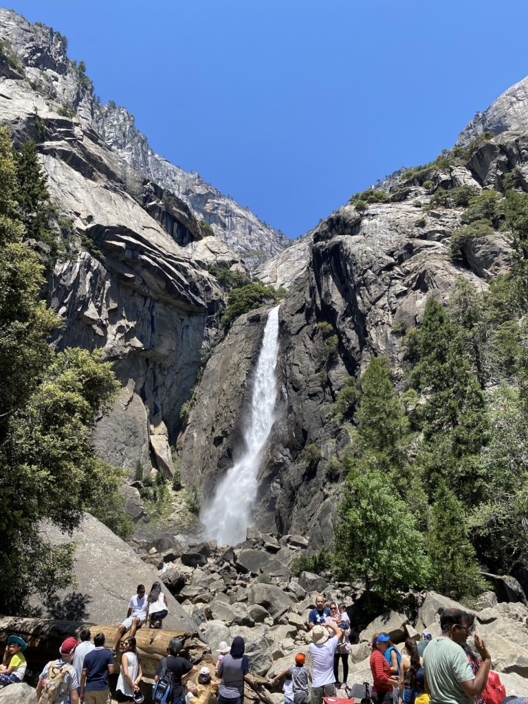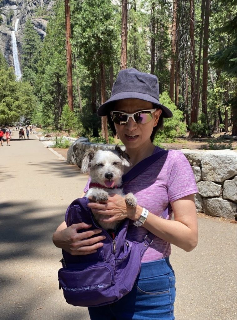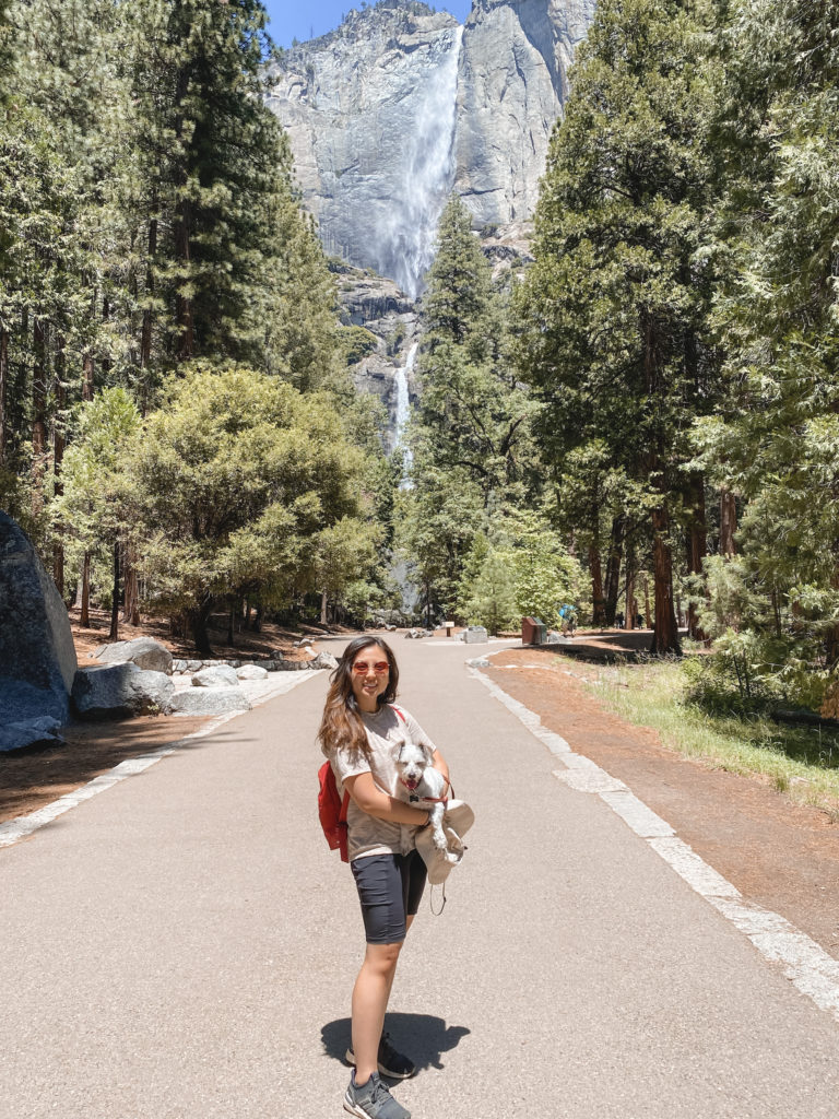 One of the trails that dogs can join you on is a short trek to Lower Yosemite Falls. It’s about a mile loop if you start from the shuttle bus stop, and I’d recommend you start off going clockwise. It’s not shaded at all in the beginning as you walk towards the falls, but the latter half of the loop is partially shaded from the forest trees. The pavement here can get really hot so make sure to carry your pup or have her wear booties!