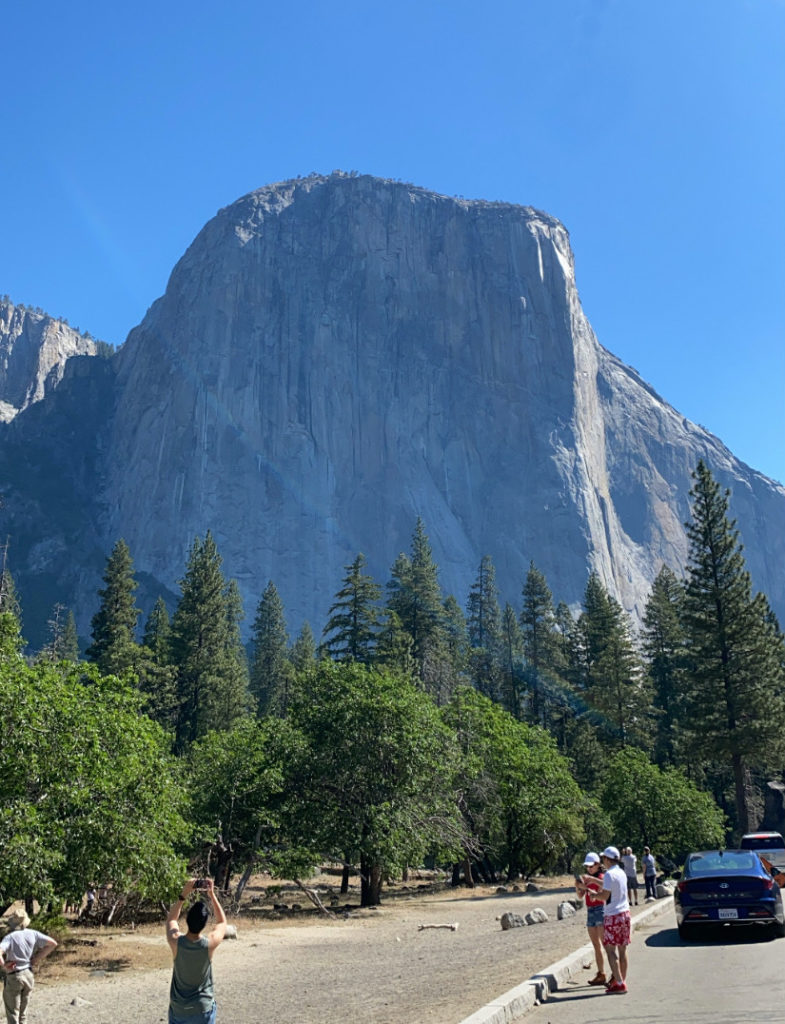 Just a stop along the main road, you’ll see El Capitan towering overhead. You’ll see cars parked alongside, plus some paved roads you can enjoy with your dog.