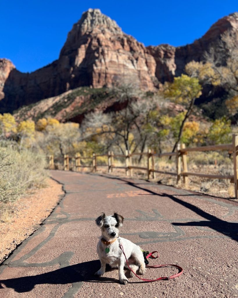 The drive into Zion coming from the east entrance was great and breathtaking going into the valley. But this national park is probably the least pet friendly one I’ve been to yet. Cars are not allowed along the road that leads into all the attractions and hikes – only shuttles, which aren’t pet friendly. There is only one trail just outside the visitor’s center, the Pa’rus Trail, that you can walk your dog, but it’s not shaded and generally quite boring. I will need to return to Zion without Maddie in the future!