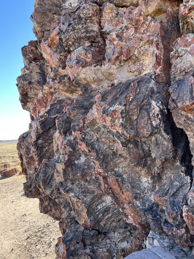 Petrified Forest is a pretty under-the-radar type of national park. There’s no shuttle system or fancy lodging for you to stay within the park itself. It’s really minimal, and it’s a real piece of history! In the middle of the desert, this national park was formed by trees that fell into a river 218 million years ago, and the internal plant material got replaced by sediments and minerals from the river. When the river dried out, the petrified logs were left there. So each chunk of petrified wood is super dense and heavy, and has a rainbow of colors due to the quartz and other minerals.