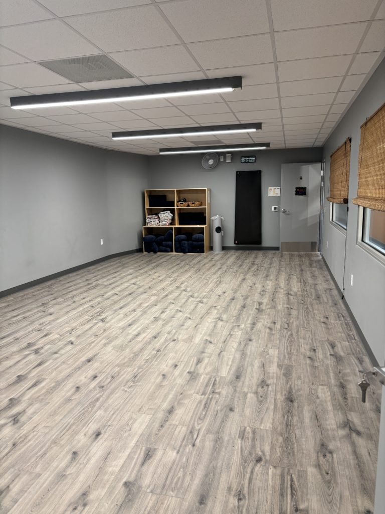 There’s an upstairs yoga studio and two cycling bikes. This location is also air conditioned 🙂