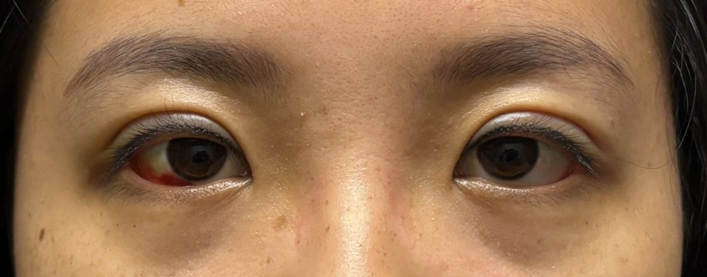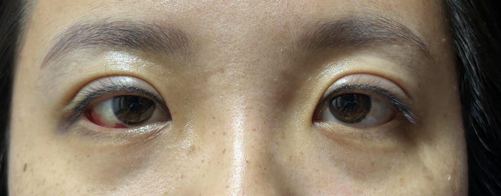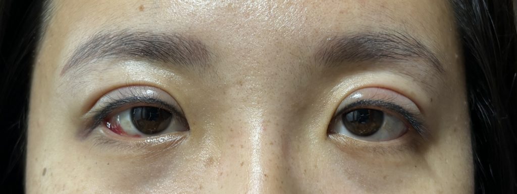 I did somehow pop a blood vessel in my right eye overnight. That may have been due to me tugging at the corners of my eyes to remove gunk that accumulated.